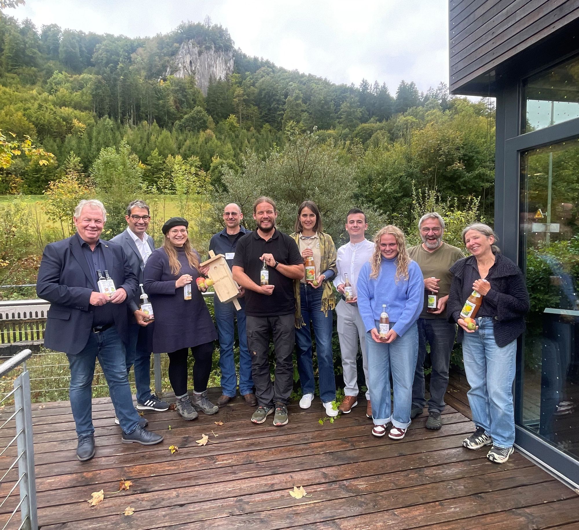 Am Montag, den 22. September, besuchten der grüne Landtagsabgeordnete Christoph Höh und Staatssekretär Dr. Andre Baumann vom Umweltministerium die BODEG – Bäuerliche Vermarktung Oberes Donautal eG in Beuron. Die Genossenschaft trägt mit der Pflege und Vermarktung von Streuobstwiesen wesentlich zu einer nachhaltigeren regionalen Ökonomie bei. Mit 33 Mitgliedern, über 70 Obsterzeugern und insgesamt über 2000 Obsthochstämmen erzeugen sie pro Jahr über 20 000 Liter Saft, Cider, Essige und Obstbrände.